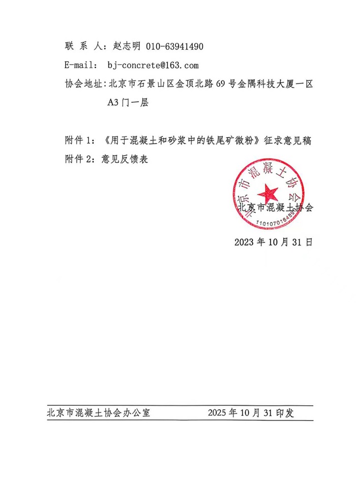 关于团体标准《用于混凝土和砂浆中的铁尾矿微粉》征求意见的通知