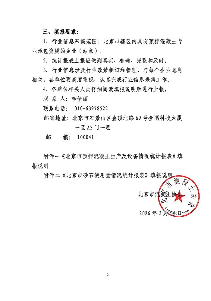 关于做好2026年一季度北京市预拌混凝土行业信息采集工作的通知